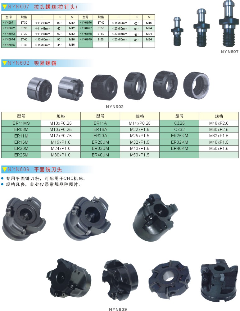 铣床拉头, 螺母, 铣刀